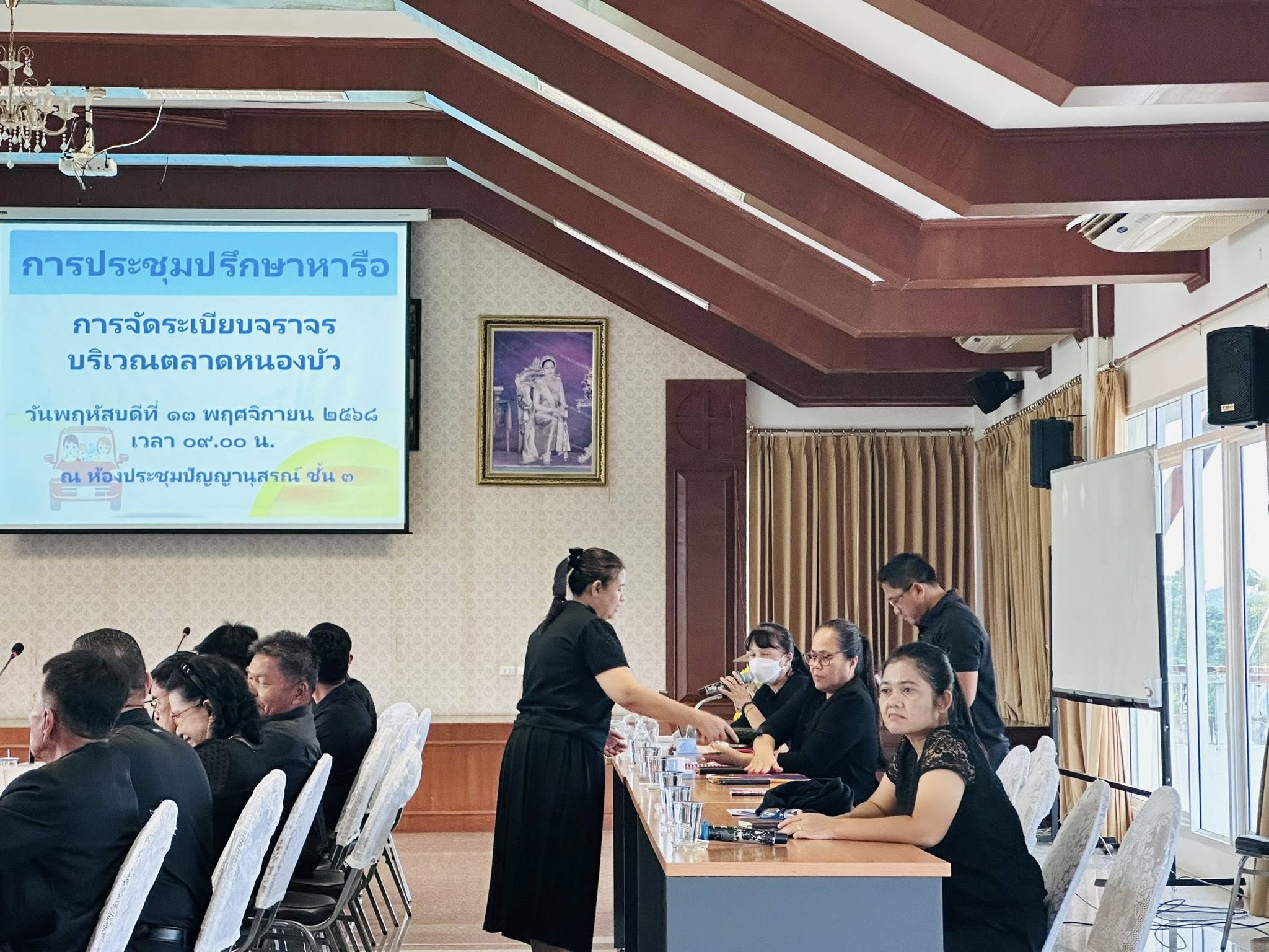จ.ส.อ.ปรีดา ทองใบ นายกเทศมนตรีตำบลหนองบัว คณะผู้บริหาร ได้เรียนเชิญ สมาชิกสภาเทศบาล ผู้ใหญ่บ้านทั้ง 4 หมู่ในเขตเทศบาล ตำรวจประจำตู้ตำบลหนองบัว และหัวหน้าส่วนราชการเทศบาลตำบลหนองบัว เข้าร่วมการประชุมปรึกษาหารือการจัดระเบียบจราจรบริเวณตลาดหนองบัว เพื่อลดอุบัติเหตุบนท้องถนนและระบายรถในเวลาเร่งด่วนให้เกิดความเป็นระเบียบเรียบร้อยในการสัญจรใช้รถใช้ถนน