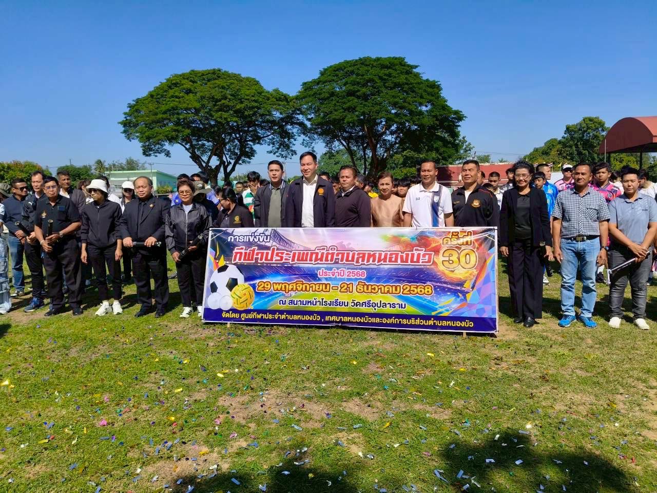 วันเสาร์ที่ 29 พฤศจิกายน 2568 ณ สนามกีฬาโรงเรียนวัดศรีอุปลาราม จ.ส.อ.ปรีดา ทองใบ นายกเทศมนตรีตำบลหนองบัว พร้อมด้วยคณะผู้บริหาร คณะสมาชิกสภาเทศบาลเข้าร่วมพิธีเปิดการแข่งขันกีฬาประเพณีตำบลหนองบัว ครั้งที่ 30 ประจำปี 2568 มี นายอัครนันท์ กัณณ์กิตตินันท์ ส.ส.กาญจนบุรี เขต 1 เป็นประธานในพิธี ซึ่งดำเนินการจัดขึ้นโดยศูนย์กีฬาประจำตำบลหนองบัวร่วมกับเทศบาลตำบลหนองบัว องค์การบริหารส่วนตำบลหนองบัว ชมรมกำนันผู้ใหญ่บ้านและชสวตำบลหนองบัว เพื่อระลึกถึงคุณงามความดีของหลวงพ่อเฒ่ายิ้ม - หลวงพ่อเหรียญ และเป็นการร่วมเฉลิมฉลองงานประจำปีวันคล้ายวันมรณภาพหลวงพ่อเหรียญซึ่งเป็นที่เคารพสักการะของชาวตำบลหนองบัว และเพื่อให้ประชาชนและเยาวชนเกิดความรักสามัคคีเล่นกีผฬาต้านยาเสพติด โดยแข่งขันตั้งแต่วันที่ 29 พฤศจิกายน -21 ธันวาคม 2568 (แข่งเฉพาะวันเสาร์ -อาทิตย์)