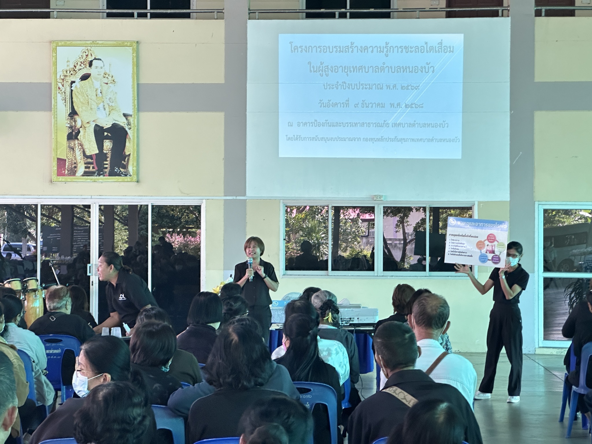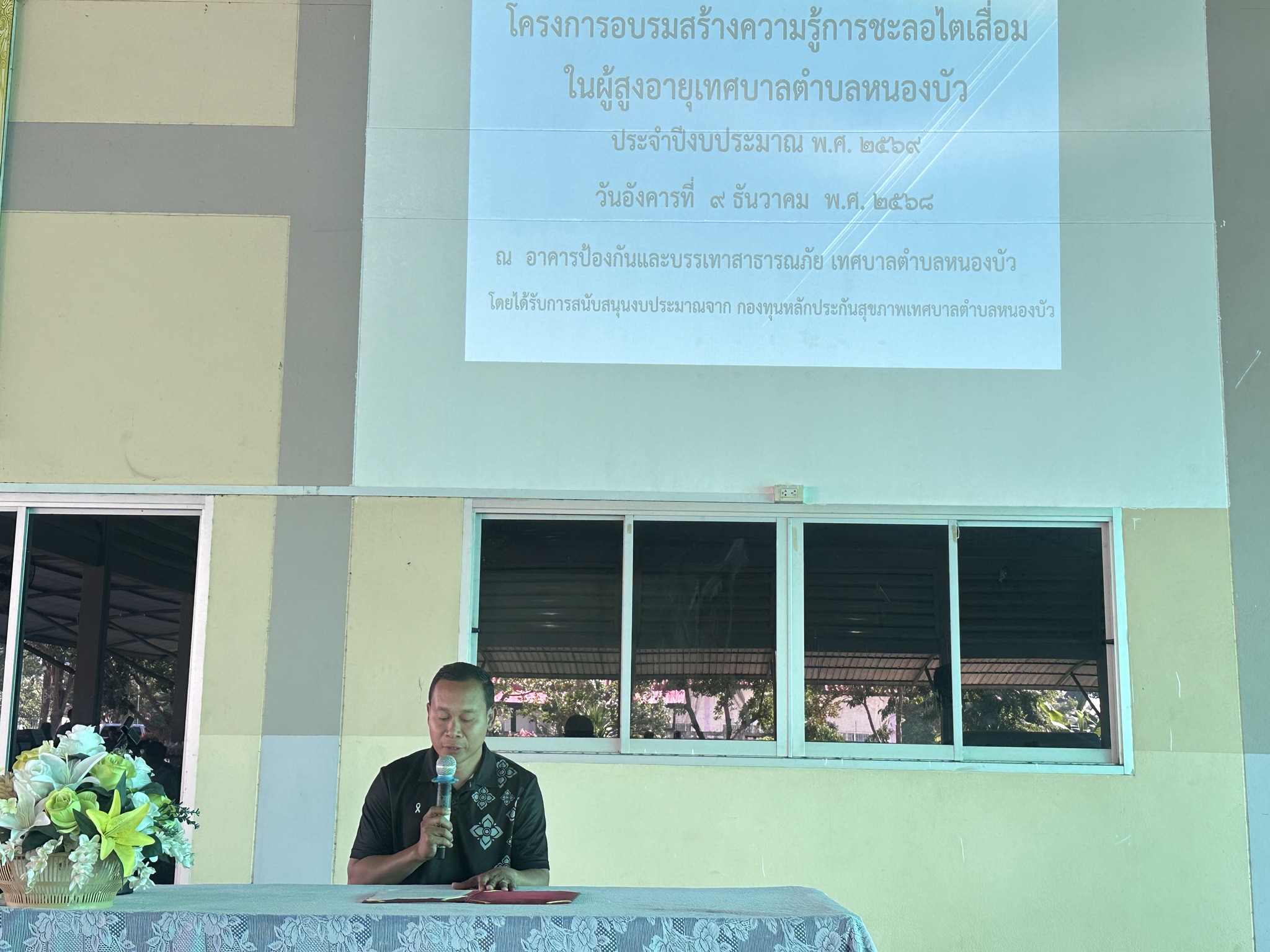 วันที่ 9 ธันวาคม 2568 จ.ส.อ.ปรีดา ทองใบ นายกเทศมนตรีตำบลหนองบัว มอบหมายกองสาธารณสุขและสิ่งแวดล้อม จัดโครงการอบรมสร้างความรู้การชะลอไตเสื่อม ประจำปีงบประมาณ พ.ศ.2569 โดยได้รับสนุบสนุนงบประมาณจากกองทุนหลักประกันสุขภาพเทศบาลตำบลหนองบัว ให้กับผู้สูงอายุ โดยมีคณะผู้บริหารและคณะสมาชิกสภาเทศบาลตำบลหนองบัว เข้าร่วมอบรมในครั้งนี้ ในการนี้ จ.ส.อ.ปรีดา ทองใบ นายกเทศมนตรีตำบลหนองบัว มอบหมายกองสวัสดิการสังคม ดำเนินโครงการจัดกิจกรรมจ่ายเงินเบี้ยยังชีพผู้สูงอายุและผู้พิการ ประจำเดือน ธันวาคม 2568 เพื่อจ่ายเบี้ยยังชีพฯ โดยมีการจับสลาก ซึ่งได้รับสนับสนุนของขวัญจากนายกเทศมนตรี คณะผู้บริหาร คณะสมาชิกสภาเทศบาลทุกคน ชมรมผู้สูงอายุ เพื่อมอบให้กับผู้สูงอายุที่เข้าร่วมกิจกรรม