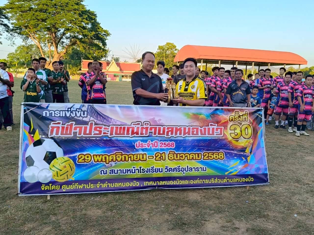 วันอาทิตย์ที่ 21 ธันวาคม 2568 ณ สนามกีฬาโรงเรียนวัดศรีอุปลาราม จ.ส.อ.ปรีดา ทองใบ นายกเทศมนตรีตำบลหนองบัว พร้อมด้วยคณะผู้บริหาร คณะสมาชิกสภาเทศบาลเข้าร่วมพิธีปิดการแข่งขันกีฬาประเพณีตำบลหนองบัว ครั้งที่ 30 ประจำปี 2568 มีจ.ส.อ.ปรีดา ทองใบ นายกเทศมนตรีตำบลหนองบัว เป็นประธานในพิธี ซึ่งดำเนินการจัดขึ้นโดยศูนย์กีฬาประจำตำบลหนองบัวร่วมกับเทศบาลตำบลหนองบัว องค์การบริหารส่วนตำบลหนองบัว ชมรมกำนันผู้ใหญ่บ้านและชสวตำบลหนองบัว โดยแข่งขันตั้งแต่วันที่ 29 พฤศจิกายน -21 ธันวาคม 2568 (แข่งเฉพาะวันเสาร์ -อาทิตย์) ซึ่งภายในงานมีการจัดกีฬาพื้นบ้านเพื่อสร้างความสามัคคีในชุมชน และจ.ส.อ.ปรีดา ทองใบ นายกเทศมนตรี ได้สนับสนุนของรางวัลเพื่อจับสลากมอบความสุขให้กับประชาชนที่เข้าร่วมงานในครั้งนี้