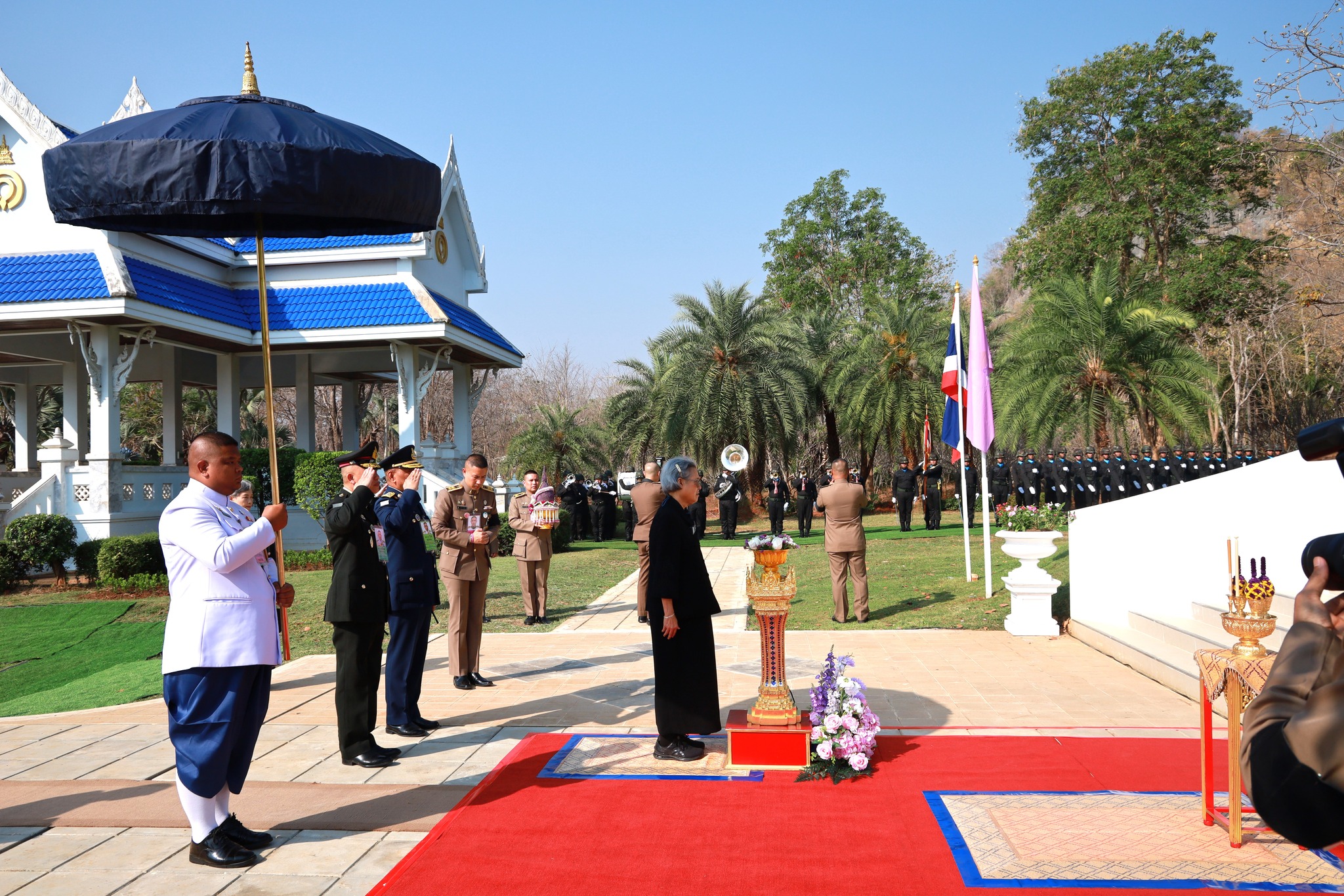 วันที่ 10 กุมภาพันธ์ 2569 เวลา 09.00 น. จ.ส.อ.ปรีดา ทองใบ นายกเทศมนตรีตำบลหนองบัว เผ้าฯรับเสด็จ สมเด็จพระกนิษฐาธิราชเจ้า กรมสมเด็จพระเทพรัตนราชสุดา ฯ สยามบรมราชกุมารี เสด็จพระราชดำเนินไปยังสวนสมเด็จพระเจ้าบรมวงศ์เธอ เจ้าฟ้ากัลยาณิวัฒนา กรมหลวงนราธิวาสราชนครินทร์ บดินทรเชษฐภคินี สวนแม่ - สวนลูก เพื่อทรงเป็นประธานในพิธีเปิดพระอนุสาวรีย์ สมเด็จพระเจ้าบรมวงศ์เธอ เจ้าฟ้ากัลยาณิวัฒนา กรมหลวงนราธิวาสราชนครินทร์ โดยทรงกดปุ่มไฟฟ้าเปิดแพรคลุมพระอนุสาวรีย์ฯ ทรงพระสุหร่าย ทรงเจิมป้ายพระนาม และทรงวางพุ่มดอกไม้ ถวายราชสักการะ เพื่อน้อมรำลึกในพระกรุณาคุณที่ทรงมีต่อพสกนิกรชาวไทย โดยมี นางสาววริษฐา สงวนเสริมศรี ผู้ว่าราชการจังหวัดกาญจนบุรี นายจิโรจน์ กรีดกราย ผู้พิพากษาหัวหน้าคณะชั้นต้นในศาลจังหวัดกาญจนบุรี พลตรี ชนมากรณ์ ภิบาลชนม์ ผู้บัญชาการมณฑลทหารบกที่ 17 พลตำรวจตรี พศวีร์ เรืองภู่ ผู้บังคับการตำรวจภูธรจังหวัดกาญจนบุรี นายทรัท เหลืองสอาด รองผู้ว่าราชการจังหวัดกาญจนบุรี นางกษยา เหลืองสอาด รองนายกเหล่ากาชาดจังหวัดกาญจนบุรี นางจตุพร ตันตีรังสี ผู้อำนวยการวิทยาลัยเกษตรและเทคโนโลยีกาญจนบุรี ประธานกรรมการมูลนิธิสวนสมเด็จ ฯ นายไพรวัลย์ ยาปัญ (ครูรางวัลเจ้าฟ้ามหาจักรี ครั้งที่6 ปี 2569 ประเทศไทย) หัวหน้าส่วนราชการ ทหาร ตำรวจ และพสกนิกรชาวจังหวัดกาญจนบุรี เฝ้าฯ รับเสด็จฯ